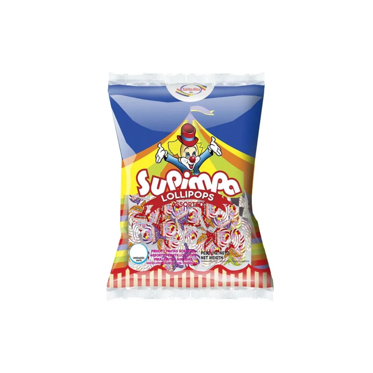 O produto vem embalado em um pacote plástico com destaque para a marca e o personagem único que identifica o Pirulito Supimpa. Cada unidade é cuidadosamente feita para oferecer sabor e diversão, perfeita para festas, comemorações ou para quem gosta de ter sempre uma guloseima à mão.